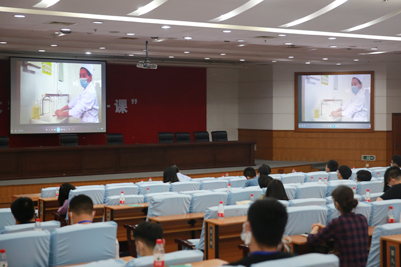 “開學(xué)第一課”現(xiàn)場教學(xué)分為兩個階段。第一個階段是現(xiàn)場教學(xué),學(xué)校黨委學(xué)生工作部(處)副部(處)長劉芝以“厚植家國情懷 詮釋責(zé)任擔(dān)當(dāng)”為主題,從“嚴(yán)管彰顯厚愛、堅守紀(jì)律意識和規(guī)矩意識”開講,圍繞“彰顯制度優(yōu)勢和治理效能”“提供中國智慧和中國方案”“展現(xiàn)中國精神和中國力量”“涌現(xiàn)時代責(zé)任和青年擔(dān)當(dāng)”四個方面,通過大量詳實的統(tǒng)計數(shù)據(jù)和生動鮮活的感人事例為同學(xué)們講述了疫情大考中的國家響應(yīng)和全民行動,彰顯出的中國精神、中國力量、中國速度、中國效率和中國溫度,引導(dǎo)學(xué)生樹立正確的人生觀、價值觀,厚植愛國主義情懷,強化制度認(rèn)同。第二個階段是觀看教學(xué)視頻。返校研究生和全體輔導(dǎo)員一起觀看了學(xué)校特別制作的《新冠肺炎基本知識》《六步洗手法》《含氯消毒液的配制和使用》《口罩的正確選用和使用》《疫情防控應(yīng)急演練》等視頻,進一步增強了對疫情防控知識和技能的了解和掌握。通過現(xiàn)場教學(xué)和觀看視頻,做到疫情防控知識與愛國主義教育相結(jié)合。