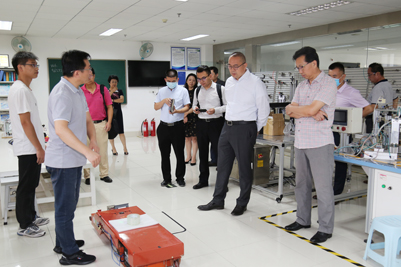 王玉華副書記陪同客人參觀了我校機(jī)械工程學(xué)院機(jī)器人實(shí)驗(yàn)室、3D打印研究中心和激光加工技術(shù)訓(xùn)練室等,施乾平董事長對與機(jī)械工程學(xué)院在上述方面進(jìn)行多方面合作表達(dá)了濃厚意愿。