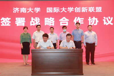 儀式上,張士強(qiáng)校長與孫萬松秘書長共同簽署“濟(jì)南大學(xué)與國際大學(xué)創(chuàng)新聯(lián)盟戰(zhàn)略合作協(xié)議”。雙方共同啟動(dòng)“自動(dòng)駕駛國際產(chǎn)業(yè)研究院、國際合作辦學(xué),國際健康生命社區(qū)建設(shè),山東泰山黃河文化研究”合作項(xiàng)目。