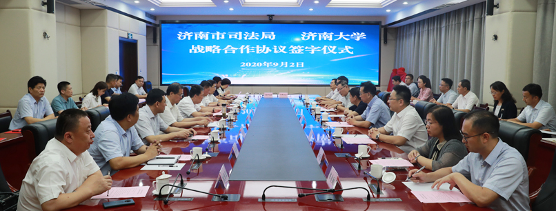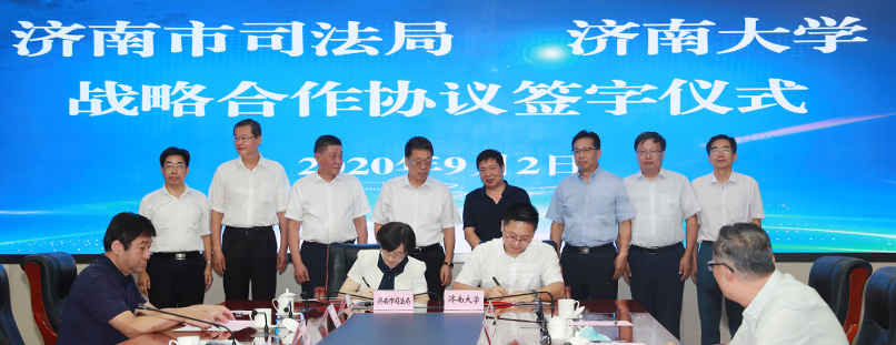 9月2日下午,濟(jì)南大學(xué)與濟(jì)南市司法局戰(zhàn)略合作協(xié)議簽字儀式在龍奧大廈舉行。省司法廳黨委書(shū)記、廳長(zhǎng)王玉君,濟(jì)南大學(xué)黨委書(shū)記徐景顏,濟(jì)南市副市長(zhǎng)吳德生,省司法廳黨委委員、副廳長(zhǎng)朱曉峰,濟(jì)南大學(xué)黨委副書(shū)記王玉華等出席簽約儀式。濟(jì)南市司法局部分班子成員、機(jī)關(guān)處室主要負(fù)責(zé)人,學(xué)校辦公室、合作發(fā)展處、政法學(xué)院、信息科學(xué)與工程學(xué)院負(fù)責(zé)人等參加了簽約儀式。市司法局黨委書(shū)記、局長(zhǎng)謝圣仁主持儀式。