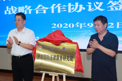 學(xué)校合作發(fā)展處處長(zhǎng)盧旺,市司法局黨委委員、政治部主任石穎分別代表濟(jì)南大學(xué)和濟(jì)南市司法局簽署戰(zhàn)略合作協(xié)議。濟(jì)南市副市長(zhǎng)吳德生,濟(jì)南大學(xué)黨委副書(shū)記王玉華共同為“濟(jì)南律師學(xué)院”揭牌。省司法廳黨委書(shū)記、廳長(zhǎng)王玉君,濟(jì)南大學(xué)黨委書(shū)記徐景顏共同為“濟(jì)南國(guó)際法律服務(wù)研究院”揭牌。