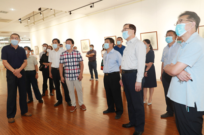 張江汀部長最后來到舜道藝術(shù)館,參觀學(xué)校黨委統(tǒng)戰(zhàn)部聯(lián)合黨委宣傳部舉辦的“不忘初心 藝路同行”第二屆黨外書畫家作品聯(lián)展。本次展覽收集展出了民盟濟(jì)南大學(xué)支部解均、張寧,民革濟(jì)南大學(xué)支部黃斌,九三學(xué)社濟(jì)南大學(xué)委員會王小飛,無黨派滕西奇、陳健、梁振忠等黨外書畫家的書法繪畫作品四十余幅。張江汀部長與在場的書畫家們進(jìn)行交流,希望廣大黨外書畫家以我筆寫我心,共繪同心圓,筑夢新時代。