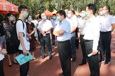 迎新當(dāng)天,學(xué)校領(lǐng)導(dǎo)徐景顏、張士強(qiáng)、張碩秋、王志來(lái)到主校區(qū)和舜耕校區(qū)迎新現(xiàn)場(chǎng),看望前來(lái)報(bào)到的新生和家長(zhǎng),親切慰問(wèn)奮戰(zhàn)在迎新一線的工作人員并實(shí)地察看了學(xué)生公寓等基礎(chǔ)設(shè)施。學(xué)校領(lǐng)導(dǎo)在迎新報(bào)到點(diǎn)認(rèn)真聽(tīng)取了各學(xué)院迎新工作匯報(bào)、觀看了各單位制作的迎新宣傳展板,詳細(xì)了解迎新工作流程和新生報(bào)到情況,與廣大工作人員、志愿者以及2020級(jí)新同學(xué)、家長(zhǎng)親切交談、合影留念。學(xué)校領(lǐng)導(dǎo)鼓勵(lì)新生珍惜大學(xué)生活,努力奮進(jìn),勤學(xué)苦讀,多交朋友,在濟(jì)大成長(zhǎng)成才,成為有家國(guó)情懷、責(zé)任擔(dān)當(dāng)?shù)娜恕T谂c學(xué)生家長(zhǎng)的交談中,學(xué)校領(lǐng)導(dǎo)表示,請(qǐng)家長(zhǎng)放心,學(xué)校將為學(xué)生提供良好的學(xué)習(xí)和生活條件,保障學(xué)生順利完成學(xué)業(yè)。張碩秋副書(shū)記還來(lái)到濟(jì)南西站等地看望慰問(wèn)迎新工作人員,歡迎新同學(xué)的到來(lái)。學(xué)校辦公室、宣傳部、學(xué)工部、安全管理處、教務(wù)處、合作發(fā)展處、信息管理處、后勤管理與基建處、團(tuán)委等部門(mén)負(fù)責(zé)人,也一同來(lái)到迎新現(xiàn)場(chǎng)。