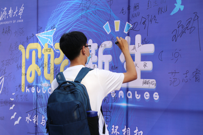 時(shí)維九月,秋高氣爽,9月17日,美麗的濟(jì)南大學(xué)校園迎來(lái)了近萬(wàn)名2020級(jí)新生。來(lái)到濟(jì)大的第一天,他們步履匆匆而堅(jiān)定,心潮澎湃而自信,迎著初升的朝陽(yáng),滿懷對(duì)大學(xué)生活的憧憬,邁入人生的新征程。在學(xué)校的主干道兩側(cè),主要路口,志愿者們各就各位,隨時(shí)做著熱情迎接每一位新生的準(zhǔn)備,濟(jì)大以其嶄新的面貌迎接著來(lái)自四面八方的新生。