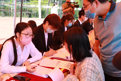為確保家庭經(jīng)濟(jì)困難新生順利入學(xué),學(xué)校資助管理中心在報(bào)到現(xiàn)場(chǎng)開(kāi)設(shè)“綠色通道”,現(xiàn)場(chǎng)開(kāi)通了校園地國(guó)家助學(xué)貸款咨詢(xún)、生源地國(guó)家助學(xué)貸款手續(xù)辦理等一站式服務(wù),徐景顏書(shū)記、張士強(qiáng)校長(zhǎng)現(xiàn)場(chǎng)為部分學(xué)生發(fā)放才良助學(xué)金。各學(xué)院結(jié)合學(xué)科、專(zhuān)業(yè)特色,設(shè)立名師專(zhuān)家咨詢(xún)臺(tái),教學(xué)科研、學(xué)風(fēng)建設(shè)、科技創(chuàng)新等成果展示,各具特色的合影墻、“夢(mèng)想車(chē)票”、寓意環(huán)環(huán)相扣的“水環(huán)”、“幸運(yùn)大轉(zhuǎn)盤(pán)”、代表美好祝愿的種子……在各學(xué)院的齊心協(xié)力下,學(xué)校迎新工作特色頻現(xiàn)、亮點(diǎn)紛呈,有條不紊地進(jìn)行。