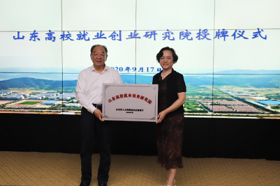 授牌儀式上,省公共就業(yè)和人才中心專職副書記金魯峰同志介紹了就業(yè)創(chuàng)業(yè)研究院成立籌備情況,宣讀了山東高校就業(yè)創(chuàng)業(yè)研究院名單;省人力資源社會保障廳黨組副書記、副廳長、一級巡視員夏魯青同志為濟南大學(xué)等五所高校授牌。