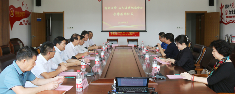 徐景顏書記對山東海事職業(yè)學(xué)院近年來的發(fā)展予以高度評價,他表示,山東海事職業(yè)學(xué)院作為山東省首家混合所有制辦學(xué)實踐院校,積極探索實踐“院校整體、二級學(xué)院、公共實訓(xùn)基地”等層面的“大混套小混”混合所有制辦學(xué)模式。在今年四月份,省委書記劉家義出席的全省高等學(xué)校高質(zhì)量發(fā)展座談會上,王敬良校長作了關(guān)于《深化混合所有制改革 激發(fā)辦學(xué)活力》的專題發(fā)言,充分說明了山東海事職業(yè)學(xué)院已成為濰坊國家職業(yè)教育創(chuàng)新發(fā)展試驗區(qū)建設(shè)的重大制度創(chuàng)新亮點,為全國職業(yè)院?;旌纤兄聘母锾峁┝撕芎玫慕?jīng)驗和理論支撐。濟(jì)南大學(xué)和山東海事職業(yè)學(xué)院的“結(jié)親”,有利于開展更廣泛的往來合作,濟(jì)南大學(xué)將不遺余力地將協(xié)議內(nèi)容落到實處,爭取早日結(jié)出合作的碩果。
