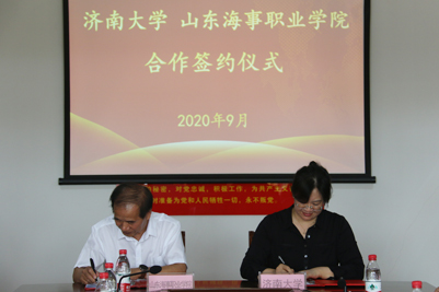 9月23日上午,濟(jì)南大學(xué)與山東海事職業(yè)學(xué)院合作協(xié)議簽約儀式在山東海事職業(yè)學(xué)院舉行。濟(jì)南大學(xué)黨委書記徐景顏,副校長李光紅,山東海事職業(yè)學(xué)院黨委書記、濟(jì)南大學(xué)原副校長王保賢,院長王敬良,黨委副書記徐立清,副院長李振鵬、張慶會,濰坊市教育局二級調(diào)研員李廣敬,濱海管委會二級專員杜長明,濟(jì)南大學(xué)辦公室、合作發(fā)展處、音樂學(xué)院等負(fù)責(zé)人參加了簽約儀式。