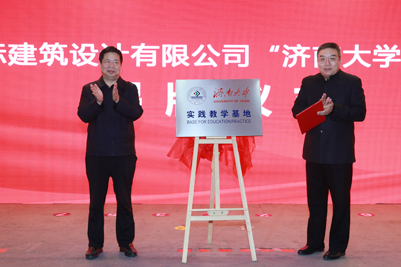 徐景顏書記為申作偉董事長頒發(fā)了土木建筑學(xué)院名譽(yù)院長聘書;徐景顏書記和申作偉董事長共同為山東大衛(wèi)國際建筑設(shè)計有限公司“濟(jì)南大學(xué)實踐教學(xué)基地”揭牌。