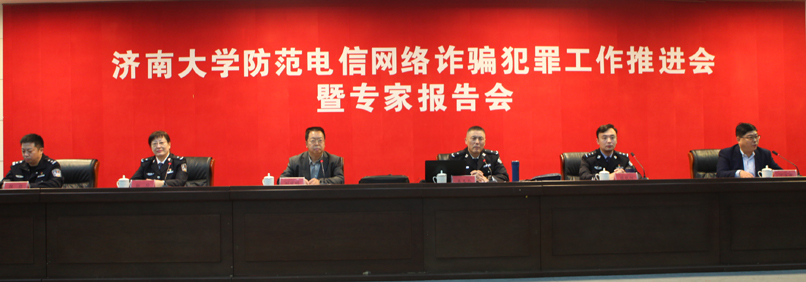 10月16日,濟(jì)南大學(xué)防范電信網(wǎng)絡(luò)詐騙犯罪工作推進(jìn)會(huì)暨專家報(bào)告會(huì)在第一學(xué)術(shù)報(bào)告廳舉行。學(xué)校副校長劉宗明,濟(jì)南市公安局刑警支隊(duì)副支隊(duì)長朱玉杰,濟(jì)南市反詐騙中心工作人員、兩校區(qū)駐地派出所負(fù)責(zé)人,學(xué)校防范電信網(wǎng)絡(luò)詐騙犯罪工作專班成員,學(xué)生代表參加了活動(dòng)。會(huì)議由濟(jì)南大學(xué)安全管理委員辦公室主任、黨委保衛(wèi)部部長、安全管理處處長丁立波主持。