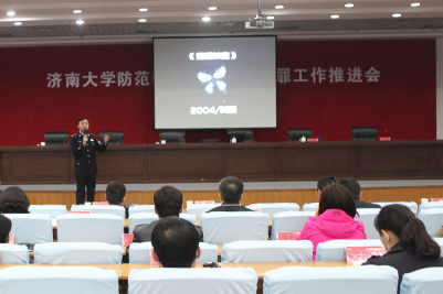 會(huì)議介紹了《濟(jì)南大學(xué)校園防范電信網(wǎng)絡(luò)詐騙犯罪宣傳工作方案》實(shí)施推進(jìn)情況。朱玉杰副支隊(duì)長代表濟(jì)南市公安機(jī)關(guān)講話。他結(jié)合當(dāng)前電信網(wǎng)絡(luò)詐騙犯罪的發(fā)展趨勢(shì)、詐騙犯罪手法和打擊詐騙犯罪活動(dòng)的緊迫性,表示公安機(jī)關(guān)將主動(dòng)會(huì)同學(xué)校,進(jìn)一步完善聯(lián)合宣傳防范機(jī)制,共同加強(qiáng)宣傳和打擊電信網(wǎng)絡(luò)詐騙犯罪力度,號(hào)召廣大在校師生人人爭(zhēng)做“反詐宣傳志愿者”,廣泛宣傳,為打造“無詐騙犯罪校園”、維護(hù)社會(huì)治安穩(wěn)定貢獻(xiàn)力量。