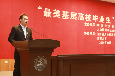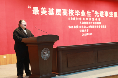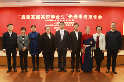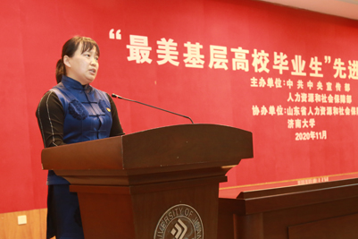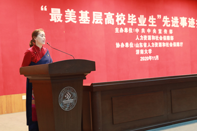11月20日上午,由中宣部、人社部主辦,山東省人社廳、濟(jì)南大學(xué)協(xié)辦的“最美基層高校畢業(yè)生”先進(jìn)事跡報(bào)告會(huì)在第一學(xué)術(shù)報(bào)告廳舉行。人社部人力資源流動(dòng)管理司副司長(zhǎng)孫曉麗出席并講話,山東省人力資源和社會(huì)保障廳二級(jí)巡視員劉玉亮致辭。報(bào)告會(huì)由濟(jì)南大學(xué)黨委副書記張碩秋主持。人社部、山東省人社廳、濟(jì)南大學(xué)有關(guān)負(fù)責(zé)同志出席了報(bào)告會(huì),濟(jì)南大學(xué)200余名師生參加。