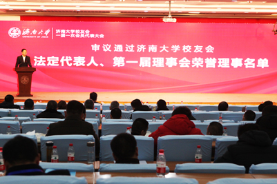 12月19日,濟(jì)南大學(xué)校友會(huì)成立大會(huì)暨一屆一次會(huì)員代表大會(huì)在濟(jì)南大學(xué)第一學(xué)術(shù)報(bào)告廳召開。山東省教育廳副廳長戴龍成、山東省民政廳社會(huì)組織管理局副局長姬升峰、濟(jì)南大學(xué)黨委書記徐景顏,黨委副書記王玉華、張碩秋,副校長王志、劉宗明、李光紅、楊景波、張勇,紀(jì)委書記續(xù)鐵,山東大學(xué)、山東師范大學(xué)、山東財(cái)經(jīng)大學(xué)、山東交通學(xué)院、齊魯師范學(xué)院、山東廣播電視大學(xué)校友工作負(fù)責(zé)同志,學(xué)校部分職能部門和學(xué)院主要負(fù)責(zé)同志,會(huì)員代表,近百名各地校友代表出席會(huì)議。會(huì)議由黨委副書記王玉華主持。