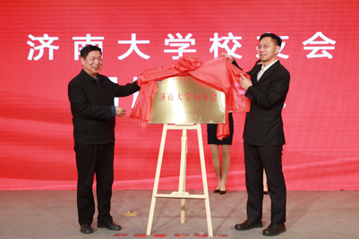 山東省教育廳副廳長戴龍成同志與校黨委書記徐景顏共同為“濟(jì)南大學(xué)校友會(huì)”揭牌。