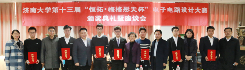 12月24日,濟(jì)南大學(xué)第十三屆“恒拓?梅格彤天杯”電子電路設(shè)計(jì)大賽頒獎(jiǎng)儀式在第一教學(xué)樓1108會(huì)議室舉行。濟(jì)南大學(xué)黨委副書(shū)記張碩秋,濟(jì)南大學(xué)教授、山東恒拓科技發(fā)展有限公司專家孟慶金,山東梅格彤天電氣有限公司執(zhí)行總裁谷青松,濟(jì)南大學(xué)團(tuán)委、自動(dòng)化與電氣工程學(xué)院相關(guān)負(fù)責(zé)同志以及參賽師生代表參加活動(dòng)。頒獎(jiǎng)儀式由自動(dòng)化與電氣工程學(xué)院黨委副書(shū)記、副院長(zhǎng)陳春鋒主持。