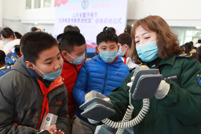 啟動(dòng)儀式結(jié)束后,與會(huì)人員現(xiàn)場(chǎng)參觀了宣傳教育活動(dòng)現(xiàn)場(chǎng)集中展示的安檢、排爆、警械等反恐裝備,觀摩了濟(jì)南大學(xué)保安隊(duì)員的盾牌操、處置發(fā)現(xiàn)疑似爆炸物、突發(fā)火情和市中區(qū)特警處置刀斧砍殺四個(gè)科目演練?;顒?dòng)現(xiàn)場(chǎng),公安民警講解了校園常見(jiàn)恐襲方式和應(yīng)對(duì)處置方法,應(yīng)急救援人員演示了消防救援和緊急避險(xiǎn)技能,醫(yī)護(hù)人員進(jìn)行了急救技能展示,師生逐個(gè)體驗(yàn),“零距離”互動(dòng),收到良好效果。
