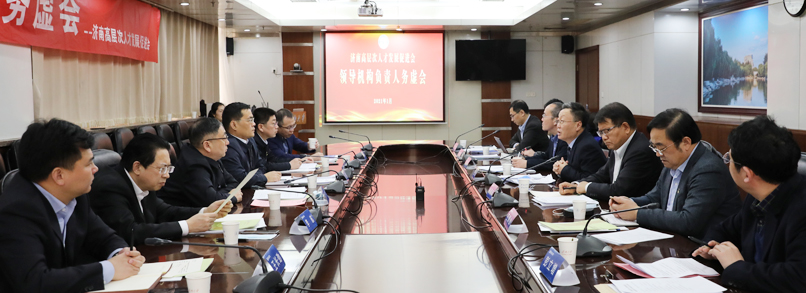 1月15日,濟(jì)南高層次人才發(fā)展促進(jìn)會(huì)領(lǐng)導(dǎo)機(jī)構(gòu)負(fù)責(zé)人務(wù)虛會(huì)在我校召開。濟(jì)南市委組織部副部長(zhǎng)韓洪強(qiáng),濟(jì)南市委組織部人才工作處副處長(zhǎng)王長(zhǎng)勁,濟(jì)南高層次人才發(fā)展促進(jìn)會(huì)(以下簡(jiǎn)稱促進(jìn)會(huì))會(huì)長(zhǎng)、山東大學(xué)國(guó)家糖中心主任凌沛學(xué),促進(jìn)會(huì)副會(huì)長(zhǎng)、濟(jì)南大學(xué)校長(zhǎng)張士強(qiáng),促進(jìn)會(huì)監(jiān)事長(zhǎng)、山東高速集團(tuán)有限公司黨委常委、副總經(jīng)理李航,國(guó)家計(jì)劃特聘專家、泰山學(xué)者、泰山產(chǎn)業(yè)領(lǐng)軍人才等全體領(lǐng)導(dǎo)機(jī)構(gòu)負(fù)責(zé)人及下設(shè)聯(lián)盟理事長(zhǎng)、秘書處工作人員參加會(huì)議。會(huì)議由泰山產(chǎn)業(yè)領(lǐng)軍人才、濟(jì)南愛思醫(yī)藥科技有限公司董事長(zhǎng)、促進(jìn)會(huì)秘書長(zhǎng)彭立增主持。