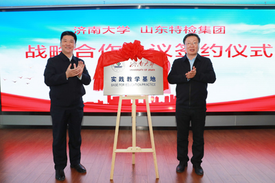 儀式上,濟(jì)南大學(xué)副校長(zhǎng)劉宗明和山東特檢集團(tuán)總經(jīng)理蔡盛東代表雙方簽訂合作協(xié)議。張士強(qiáng)校長(zhǎng)和張閩生董事長(zhǎng)共同為“濟(jì)南大學(xué)實(shí)踐教學(xué)基地”揭牌。下一步,雙方將在高層次人才共引共享、人才培養(yǎng)、科技合作等方面開(kāi)展全面合作,整合各自?xún)?yōu)勢(shì),為服務(wù)產(chǎn)業(yè)創(chuàng)新發(fā)展搭建高端平臺(tái),為雙方高質(zhì)量發(fā)展注入強(qiáng)大動(dòng)力。