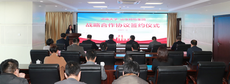 蔡盛東總經(jīng)理在致辭中表示,2021年是山東特檢集團(tuán)二次改革、二次創(chuàng)業(yè)、二次考驗(yàn)的起步之年,集團(tuán)將立足新發(fā)展階段,與濟(jì)南大學(xué)拓展多層次合作和共享機(jī)制,將高??平讨橇Y源與市場(chǎng)優(yōu)勢(shì)創(chuàng)新資源緊密結(jié)合,在檢驗(yàn)檢測(cè)、新一代信息技術(shù)、新能源、節(jié)能環(huán)保等領(lǐng)域進(jìn)一步擴(kuò)大合作范圍,強(qiáng)化合作內(nèi)容,提升合作價(jià)值,形成創(chuàng)新合力,促進(jìn)雙方事業(yè)共同發(fā)展。