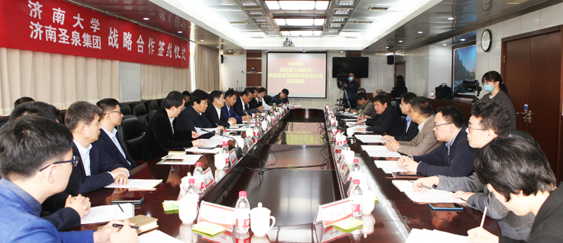 在簽約儀式上,陳月輝副校長與唐地源總裁簽訂了“濟南大學(xué)與濟南圣泉集團股份有限公司戰(zhàn)略合作”協(xié)議,雙方圍繞人工智能、高端智能檢測裝備、自動駕駛無人儲運和新能源等相關(guān)領(lǐng)域進行了座談交流。
