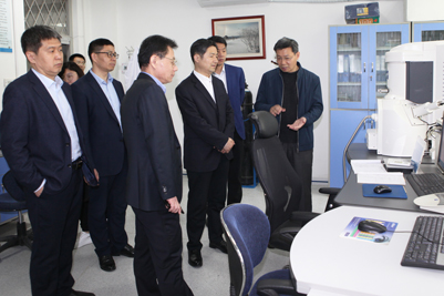 座談會后,邊祥為區(qū)長和唐地源總裁一行在陳月輝副校長的陪同下,參觀了山東省建筑材料制備與測試技術(shù)重點實驗室。