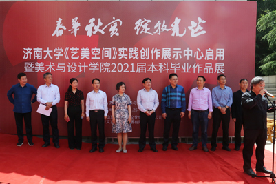 5月26日,濟(jì)南大學(xué)《藝美空間》實(shí)踐創(chuàng)作展示中心啟用儀式暨美術(shù)與設(shè)計(jì)學(xué)院2021屆本科畢業(yè)作品展開(kāi)幕舉辦。濟(jì)南大學(xué)黨委副書(shū)記張碩秋,副校長(zhǎng)王志,黨委常委、黨委宣傳部部長(zhǎng)賈海寧,黨委學(xué)生工作部(處)、教務(wù)處、合作發(fā)展處、自動(dòng)化與電氣工程學(xué)院、美術(shù)與設(shè)計(jì)學(xué)院相關(guān)負(fù)責(zé)同志及部分專業(yè)指導(dǎo)教師、2021屆畢業(yè)生代表參加了活動(dòng)。開(kāi)幕式由美術(shù)與設(shè)計(jì)學(xué)院副院長(zhǎng)陶國(guó)平主持。