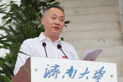 張士強(qiáng)發(fā)表了熱情洋溢的講話。他代表學(xué)校向全體畢業(yè)生表示熱烈的祝賀和美好的祝愿!向辛勤栽培同學(xué)們的老師、關(guān)心支持同學(xué)們的親友表示衷心的感謝和崇高的敬意! 他表示,在即將迎來中國(guó)共產(chǎn)黨成立100周年華誕之際,近萬名畢業(yè)生即將踏上建設(shè)社會(huì)主義現(xiàn)代化國(guó)家新征程,這是對(duì)建黨100周年最好的獻(xiàn)禮。同學(xué)們既是黨領(lǐng)導(dǎo)人民實(shí)現(xiàn)第一個(gè)百年奮斗目標(biāo)的見證者,更是在黨的領(lǐng)導(dǎo)下實(shí)現(xiàn)第二個(gè)百年奮斗目標(biāo)的建設(shè)者,在大有可為的新時(shí)代,必將大可作為也必將大有作為!同時(shí),學(xué)校高水平大學(xué)建設(shè)的成果為濟(jì)大學(xué)子成長(zhǎng)成才提供了更加廣闊的平臺(tái),同學(xué)們用自己的智慧、努力和擔(dān)當(dāng)為學(xué)校爭(zhēng)得了榮光,濟(jì)大因?yàn)橛型瑢W(xué)們而更加光彩奪目!