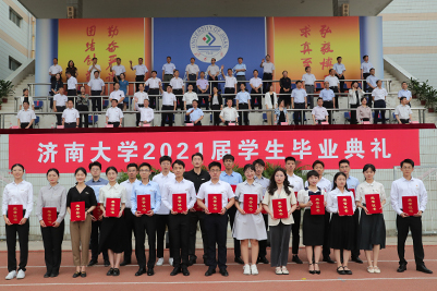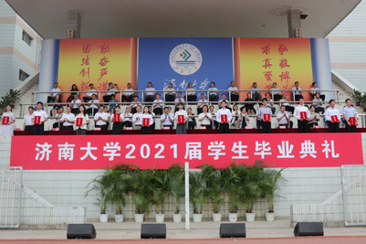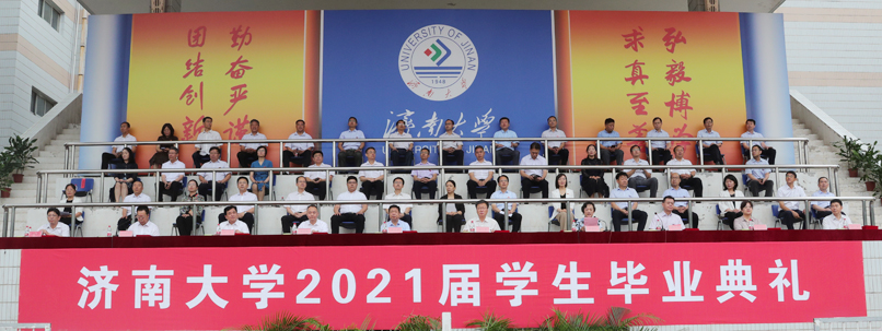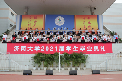 甲子湖畔揚(yáng)風(fēng)帆,青龍山麓奏驪歌。六月的濟(jì)大校園處處青春盎然,生機(jī)勃發(fā)。6月25日濟(jì)南大學(xué)2021屆學(xué)生畢業(yè)典禮在主校區(qū)運(yùn)動(dòng)場(chǎng)隆重舉行,9000余名同學(xué)即將揚(yáng)帆起航開啟人生新的征程。學(xué)校領(lǐng)導(dǎo)徐景顏、張士強(qiáng)、張碩秋、王志、陳月輝、劉宗明、李光紅、楊景波、續(xù)鐵出席典禮,畢業(yè)生代表、優(yōu)秀校友代表、各學(xué)院黨委書記、院長(zhǎng)、有關(guān)職能部門負(fù)責(zé)人和教師代表等參加典禮。學(xué)校黨委副書記張碩秋主持畢業(yè)典禮。