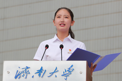 張士強(qiáng)對(duì)同學(xué)們提出了殷切希望。一是擁抱新時(shí)代,做堅(jiān)守夢(mèng)想的“濟(jì)大人”。希望同學(xué)們發(fā)揚(yáng)濟(jì)大人與黨和國(guó)家需要同向、與時(shí)代發(fā)展同行的光榮傳統(tǒng),傳承“弘毅、博學(xué)、求真、至善”的校訓(xùn),將“小我”融入“大我”,志存高遠(yuǎn),腳踏實(shí)地,努力在實(shí)現(xiàn)中華民族偉大復(fù)興中國(guó)夢(mèng)的生動(dòng)實(shí)踐中放飛青春夢(mèng)想,讓青春之花在黨和人民最需要的地方綻放。二是融入新時(shí)代,做勇于擔(dān)當(dāng)?shù)摹皾?jì)大人”。希望同學(xué)們勇敢肩負(fù)起時(shí)代責(zé)任,奮勇接過師長(zhǎng)的接力棒,心懷“國(guó)之大者”,把握大勢(shì),敢于擔(dān)當(dāng),善于作為,書寫無愧于新時(shí)代的精彩人生。三是奮斗新時(shí)代,做善于學(xué)習(xí)的“濟(jì)大人”。希望同學(xué)們都要牢固樹立終身學(xué)習(xí)理念,向?qū)嵺`學(xué)習(xí)、向書本學(xué)習(xí)、向他人學(xué)習(xí),強(qiáng)化應(yīng)對(duì)變化的能力,增強(qiáng)干事創(chuàng)業(yè)的真本領(lǐng),努力成為有理想、有學(xué)問、有才干的實(shí)干家,在新時(shí)代奮斗出一番事業(yè)。四是守護(hù)新時(shí)代,做守正創(chuàng)新的“濟(jì)大人”。希望同學(xué)們不逾規(guī)、不越矩,知敬畏、守底線,嚴(yán)于律己、克己慎行,習(xí)慣在有約束、受監(jiān)督的環(huán)境中成長(zhǎng)成才;要有敢為人先的銳氣,勇于解放思想、與時(shí)俱進(jìn),敢于上下求索、開拓進(jìn)?。灰憻拸?qiáng)健體魄,涵養(yǎng)積極心態(tài),讓邁向美好生活的步伐更加鏗鏘有力。