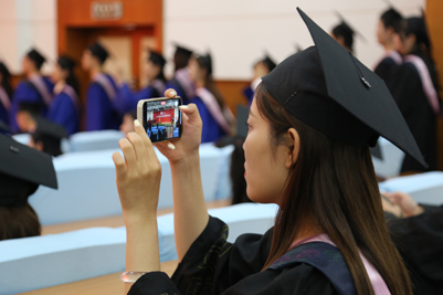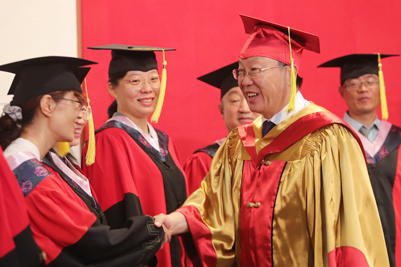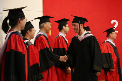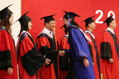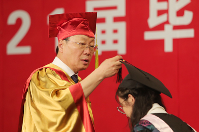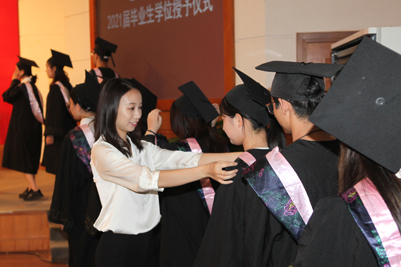 來自各學院的畢業(yè)生在師生們的見證下,身著學士服、碩士服、博士服依次上臺,校長張士強為他們一一撥穗、合影留念并親切鼓勵畢業(yè)生們揚帆遠航、逐夢未來。隨后,學院領(lǐng)導和畢業(yè)生們一一握手,表示祝賀。流蘇從帽子右邊撥到左邊,意味著同學們大學生活圓滿結(jié)束,身份也由濟南大學的在校生轉(zhuǎn)變?yōu)樾S?,更代表了畢業(yè)生們學有所成,可以展翅高飛。