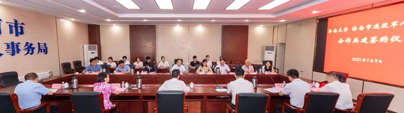 7月9日,濟南大學與濟南市退役軍人事務局合作共建簽約授牌儀式在濟南市退役軍人事務局舉行。濟南市退役軍人事務局副局長任春雨、趙玉輝,學校副校長劉宗明,學校教務處、研究生院、政法學院負責同志出席簽約儀式,簽約儀式由濟南市退役軍人事務局組織人事處處長俱滿倉主持。