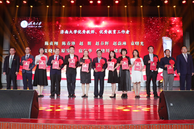 校長(zhǎng)張士強(qiáng)宣讀表彰決定;學(xué)校領(lǐng)導(dǎo)為首屆全國(guó)教材建設(shè)先進(jìn)個(gè)人、國(guó)家優(yōu)秀青年基金獲得者、省級(jí)教學(xué)名師,山東省省級(jí)教學(xué)成果獎(jiǎng)、山東省社會(huì)科學(xué)優(yōu)秀成果獎(jiǎng)、山東省科技技術(shù)獎(jiǎng)、山東省思政理論課和課程思政課程獲得者,挑戰(zhàn)杯國(guó)獎(jiǎng)指導(dǎo)教師,山東省高校優(yōu)秀輔導(dǎo)員,濟(jì)南大學(xué)教學(xué)名師、濟(jì)南大學(xué)優(yōu)秀教師、優(yōu)秀教育工作者、濟(jì)南大學(xué)第六屆十佳輔導(dǎo)員和從事教育工作30年的教師代表頒獎(jiǎng)。