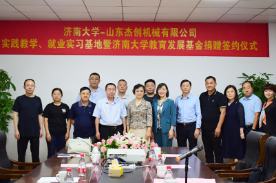 9月18日上午,“濟南大學(xué)-山東杰創(chuàng)機械有限公司實踐教學(xué)、就業(yè)實習(xí)基地暨濟南大學(xué)教育發(fā)展基金捐贈”簽約揭牌儀式在山東杰創(chuàng)機械有限公司會議室舉行,濟南大學(xué)黨委副書記張碩秋,黨委學(xué)生工作部(處)、合作發(fā)展處、機械工程學(xué)院相關(guān)負責(zé)人及師生參加活動。