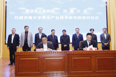會上,徐景顏書記與陳平書記為濟(jì)南大學(xué)棗莊產(chǎn)業(yè)技術(shù)研究院揭牌。劉宗明副校長與周宗安副市長共同簽署了《共建濟(jì)南大學(xué)棗莊產(chǎn)業(yè)技術(shù)研究院協(xié)議》;學(xué)校合作發(fā)展處處長盧旺與臺兒莊區(qū)副區(qū)長楊庸簽署了《承建濟(jì)南大學(xué)棗莊產(chǎn)業(yè)技術(shù)研究院協(xié)議》。