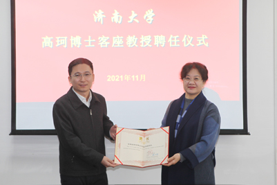 李光紅對聘請高珂博士為我??妥淌诒硎緹崃覛g迎,介紹了學(xué)校及社科工作的發(fā)展現(xiàn)狀。她指出,濟(jì)南大學(xué)聘任兼職教授符合學(xué)校的發(fā)展思路,希望今后加強(qiáng)與政府部門合作,共同為山東省經(jīng)濟(jì)社會發(fā)展建言獻(xiàn)策。儀式上,李光紅為高珂博士頒發(fā)聘書。