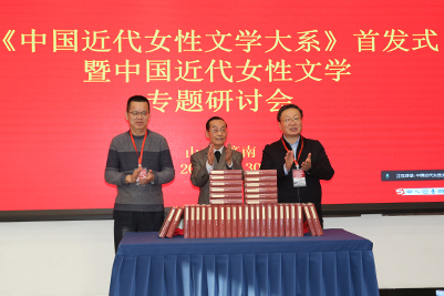 張士強(qiáng)向參會(huì)領(lǐng)導(dǎo)和專家簡(jiǎn)要介紹了學(xué)校的情況,對(duì)《中國(guó)近代女性文學(xué)大系》的出版表示祝賀,對(duì)組織和參與《大系》工程的郭延禮教授和各方人員表示感謝。楊宗杰副主席、郭延禮教授、昝亮社長(zhǎng)、黃霖教授、關(guān)愛(ài)和教授、杜澤遜教授、孫之梅教授分別講話,對(duì)《中國(guó)近代女性文學(xué)大系》的出版發(fā)行表示祝賀,對(duì)《大系》的學(xué)術(shù)價(jià)值和意義給予高度評(píng)價(jià)。杜澤遜說(shuō),《中國(guó)近代女性文學(xué)大系》是由學(xué)術(shù)名家主導(dǎo)、專業(yè)學(xué)者分工合作、規(guī)模宏大、學(xué)術(shù)質(zhì)量上乘的近代女性文學(xué)作品和理論的集成性成果,也是中國(guó)近代文獻(xiàn)整理的具有里程碑意義的豐碩成果;馬衛(wèi)中用“神化所之,體大慮周”概括《大系》的成就;黃霖說(shuō)《大系》是“中國(guó)近代文學(xué)研究史上的一座豐碑”;袁進(jìn)說(shuō),《中國(guó)近代女性文學(xué)大系》的問(wèn)世,不僅是對(duì)近代女性文學(xué)研究的推動(dòng),也是對(duì)整個(gè)中國(guó)文學(xué)史女性文學(xué)研究的推動(dòng)。會(huì)議舉行了《中國(guó)近代女性文學(xué)大系》首發(fā)儀式,張士強(qiáng)校長(zhǎng)、郭延禮教授、昝亮社長(zhǎng)共同為《大系》揭牌。首發(fā)式后,參會(huì)專家學(xué)者圍繞《中國(guó)近代女性文學(xué)大系》以及中國(guó)近代女性文學(xué)研究等問(wèn)題展開(kāi)了充分、深入的研討交流。