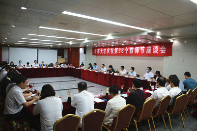 9月9日,學校召開慶祝第38個教師節座談會。學校黨委書記劉春華、校長劉宗明、黨委副書記查玉喜出席座談會。2022年最美教師、教書育人楷模、從教30年教師、輔導員、新入職教師以及黨外人士等教師代表,學校辦公室、組織部、宣傳部、統戰部、學工部、教師工作部、人力資源處、研究生院等職能部門負責人參加活動。劉宗明主持座談會。