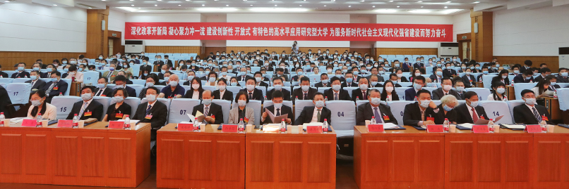 本次大會是在全國上下喜迎黨的二十大、向著第二個百年奮斗目標昂首邁進,全省上下錨定“走在前、開新局”砥礪前行,全校上下聚焦“沖一流”奮楫爭先的關鍵時期召開的一次十分重要的會議。大會的主題是:堅持以習近平新時代中國特色社會主義思想為指導,深化改革開新局,凝心聚力沖一流,建設創新性、開放式、有特色的高水平應用研究型大學,為服務新時代社會主義現代化強省建設而努力奮斗。