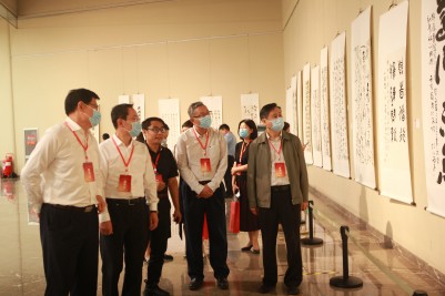 為喜迎黨的二十大勝利召開,進一步引導廣大師生學習貫徹習近平新時代中國特色社會主義思想,弘揚和傳承中華民族傳統文化藝術,9月20日下午,由濟南大學美術學院、濟南市文化和旅游局主辦的濟南大學“喜迎二十大 奮進新征程”全國高校書法教師精品展在濟南市美術館成功啟幕。山東省文聯黨組書記、副主席王世農,山東省委宣傳部副部長畢司東,濟南大學黨委常委、副校長張勇,濟南市文化和旅游局二級巡視員莊巖,山東省書協、濟南市美術館以及兄弟院校領導、省內外知名藝術家等嘉賓出席展覽,學校黨委宣傳部、統戰部、社科處、合作發展處、美術學院負責同志及部分師生參加活動。