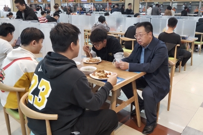 劉宗明先后來到舜耕校區第六、第七食堂、主校區第三食堂、南院第九食堂等,詳細查看了食堂的從業人員核酸檢測、健康狀況監測、消毒消殺等常態化疫情防控措施落實情況,深入后廚、操作間、倉庫等實際查看了水、電、天然氣及消防設施情況,現場查看并深入學生了解飯菜質量與品類、價格、食品留樣等情況。中午,劉宗明與正在南院九食堂進餐的幾名學生一起用餐,詳細詢問他們的學習、生活等方面情況,聽取他們對于教育教學、校園文化活動、后勤服務保障等方面的意見建議,勉勵他們珍惜好青春好時光,勤學修德明辨篤行,爭做德智體美勞全面發展、全面進步的新時代大學生。