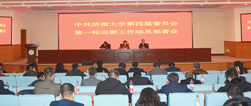 11月15日下午,中共濟南大學第四屆委員會第一輪巡察工作動員部署會在第一報告廳召開。黨委書記、黨委巡察工作領導小組組長劉春華作動員講話,黨委副書記、黨委巡察工作領導小組副組長查玉喜,黨委常委、紀委書記、監察專員、黨委巡察工作領導小組副組長續鐵出席會議,黨委巡察工作領導小組成員、黨委部門負責人、被巡察學院黨政主要負責人、其他二級單位黨委書記、巡察組全體成員參加會議。會議由查玉喜主持。
