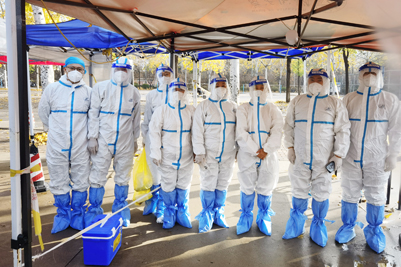 連日來,醫護人員按照嚴謹的核酸采樣流程,以較高的專業素養,默契協作,有條不紊,每天高效有序完成3.8萬人次的核酸采樣工作。隔離服、口罩、手套、鞋套、防護面屏,這些裝備把他們包裹得嚴嚴實實,雖是初冬,但高強度的一天下來,他們的汗水早已濕透衣服,戴著手套的雙手也早已發白。在這場沒有硝煙的戰斗中,醫護人員們冒著凜冽的寒風,披著滿天的繁星,奔赴在一次次的核酸篩查崗位上……簡單的流程,不變的專注,每一次安全健康的檢測背后都是他們的任勞任怨,辛勤付出。