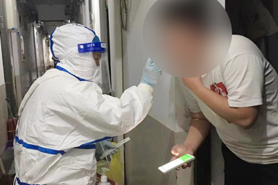 在采樣現場,醫護人員穿著密不透風的防護服、佩戴醫用防護口罩,盡管汗水浸濕了衣服,但流程依然有條不紊、規范嚴謹。參檢人員按醫院工作人員和志愿者的指引,掃描報到二維碼,按流程有序進行。服務保障組穿梭于各個采樣點,全力做好采樣物資準備、及時進行樣本傳遞工作。