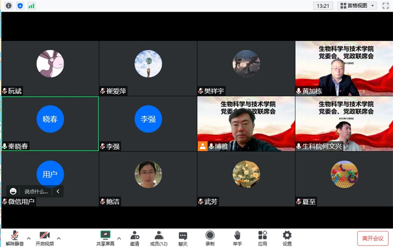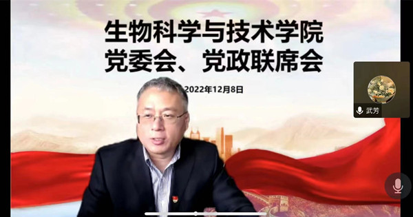 12月8日上午,學校黨委常委、副校長黃加棟出席指導生物科學與技術學院黨委會和黨政聯席會,會議以線上的方式進行,生物科學與技術學院全體班子成員參加會議,各黨支部書記列席會議。會議由生物科學與技術學院黨委書記孫翔玲主持。