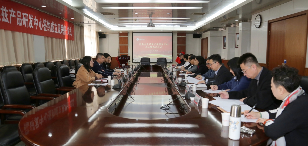 2月28日,“濟南大學果茲產品研發中心”成立暨簽約儀式在濟南大學舉行。濟南大學黨委常委、副校長商華,設計學院院長邵紅升,山東天之錦生態科技股份有限公司總經理朐禎康,山東果茲生活科技有限公司、小鷺漫漫文化產業發展有限公司總經理馮業強出席簽約儀式,山東天之錦生態科技股份有限公司研發部、項目部負責同志及學校社科處、設計學院相關負責人和老師參加活動。活動由設計學院副院長楊海波主持。