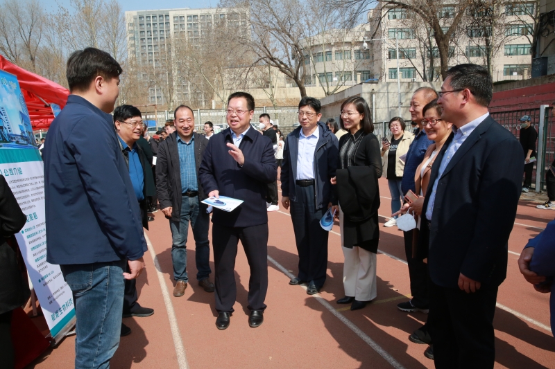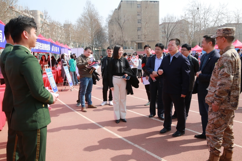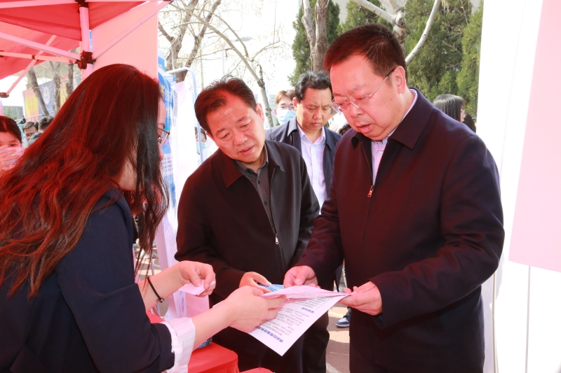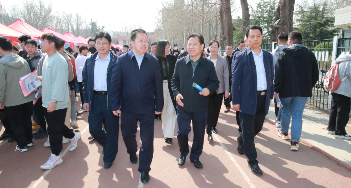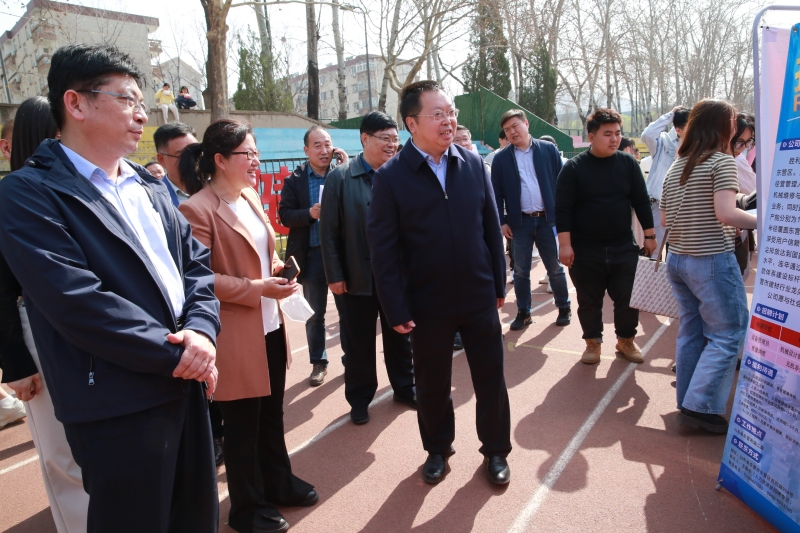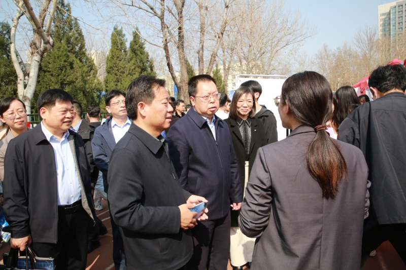 濟南市委組織部副部長、市人力資源和社會保障局局長寧延學,市人力資源和社會保障局黨組成員、市公共就業服務中心主任王振群,市中區副區長張源,濟南大學校長劉宗明、黨委副書記楊景波等來到招聘會現場,在展位前與用人單位、求職學生進行交流。