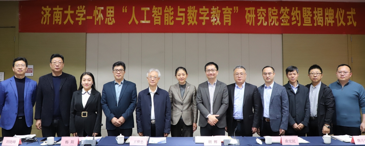 3月14日上午,濟南大學-山東懷思“人工智能與數字教育”研究院簽約揭牌儀式在濟南舉行。濟南市科協副主席胡輝、中國電子勞動學會校企合作促進會副會長王世忠、中宏網山東相關負責同志、山東懷思人工智能科技有限公司(以下簡稱“山東懷思”)總經理楊陽出席儀式,濟南大學黃加棟副校長,科技成果轉化辦公室、教務處、信息科學與工程學院相關負責同志參加簽約活動。簽約儀式由信息科學與工程學院副院長韓士元主持。