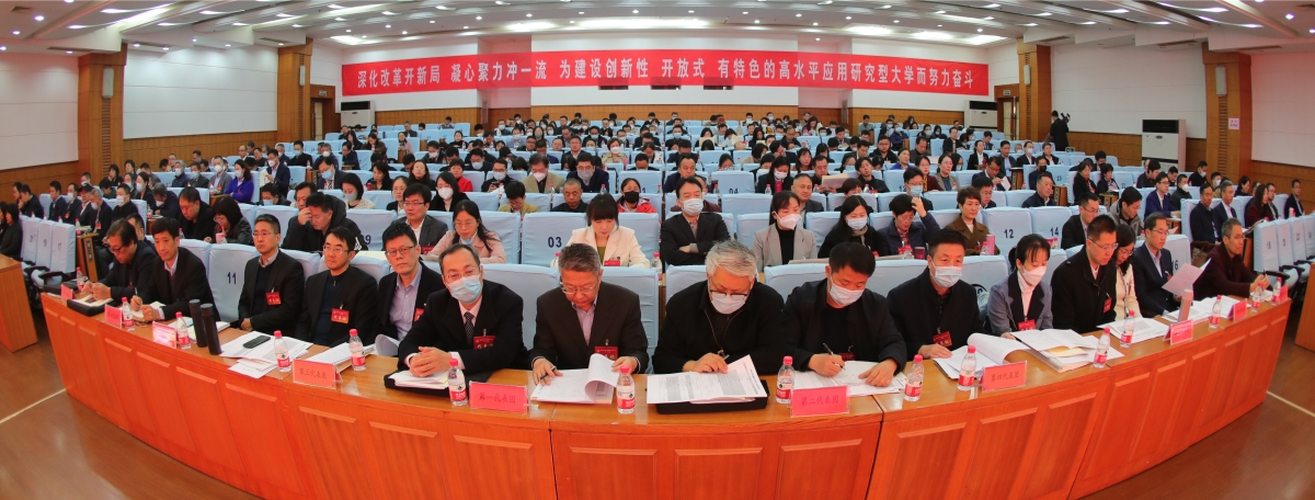 本次會議的主題是:以習近平新時代中國特色社會主義思想為指導,貫徹落實黨的二十大和二十屆二中全會精神,在總結第四屆教代會工作的基礎上,緊緊圍繞學校第四次黨代會確定的“一二三”發展思路和“四五六”戰略部署,團結全校教職工,立足新起點,勇擔新使命,展現新作為,為建設創新性、開放式、有特色的高水平應用研究型大學努力奮斗。