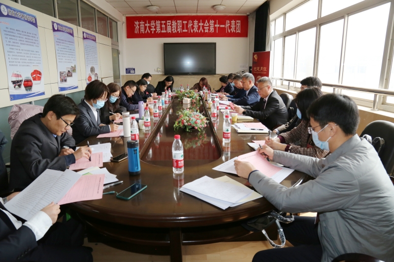 隨后,各代表團就《學校工作報告》《2023年學校工作要點》《濟南大學“四屆四次教代會”提案審查情況報告》《濟南大學2022年財務決算情況和2023年度財務預算方案的報告》《濟南大學專業技術崗位評聘管理辦法(征求意見稿)》進行了認真地討論和審議,積極為學校的建設與發展建言獻策。