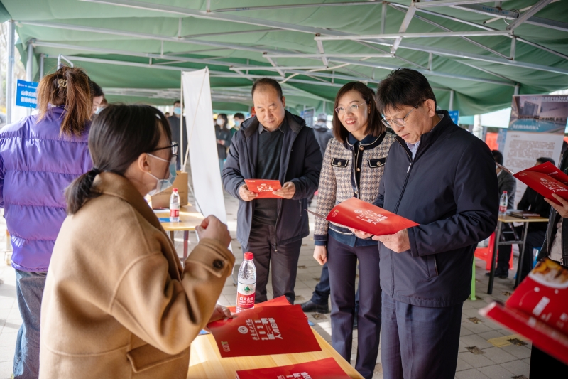 招聘會現場,楊景波一行與參會單位和求職學生親切交流,聽取用人單位對我校人才培養、就業工作的意見建議,深入了解用人單位發展狀況、人才需求情況,詢問關懷畢業生的就業意向與求職進展。同時,楊景波向一直以來關心和支持濟南大學教育教學事業發展的社會各界人士表示衷心的感謝,并希望通過此次招聘會搭建用人單位和畢業生雙向選擇平臺,為高校畢業生提供更多的就業選擇和政策支持。